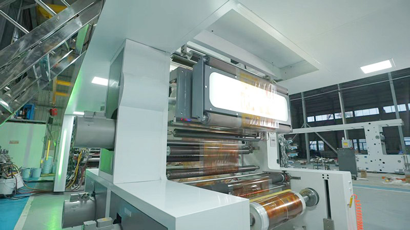 A CI (Central Impression) flexo press keeps the OPP film tightly wrapped around a central drum, which helps maintain accurate color registration, stable tension control, and consistent print quality, especially for thin film materials.